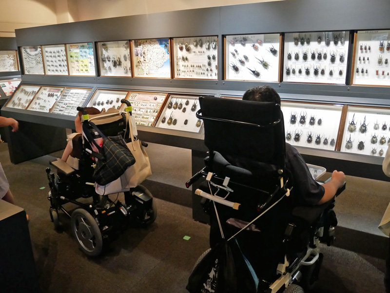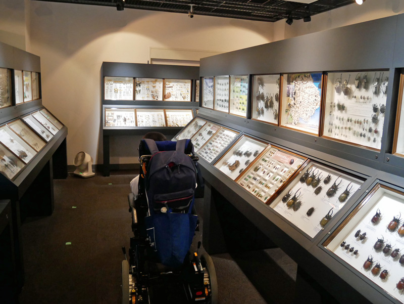 「生命の多様性 Diversity of Lifeコーナー」 展示物は80㎝~170㎝の位置に展示されています。館内フラットです。車いすが通れる幅の通路があります。