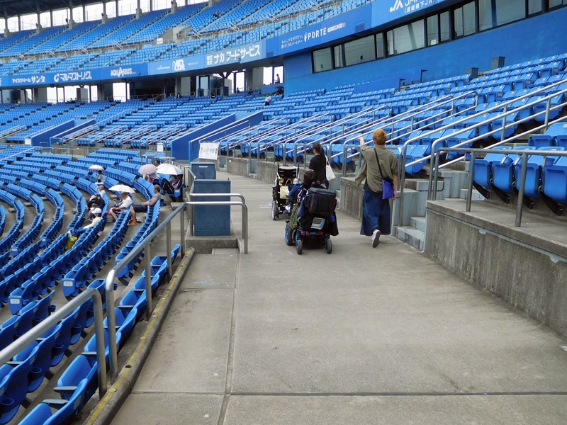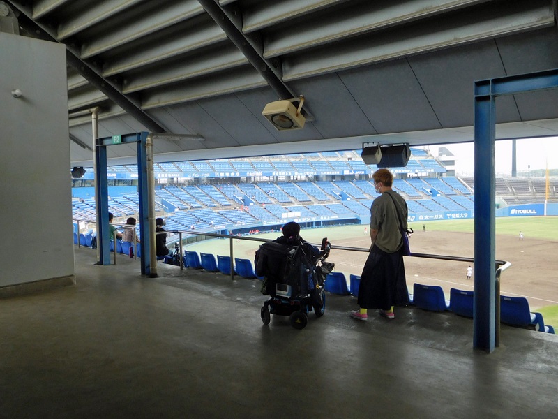 1塁側・3塁側スタンドでの見学も可能ですが、ファールボールが飛んでくる可能性がありますので、身体の不自由な方はバックネット裏がよいかと思います。