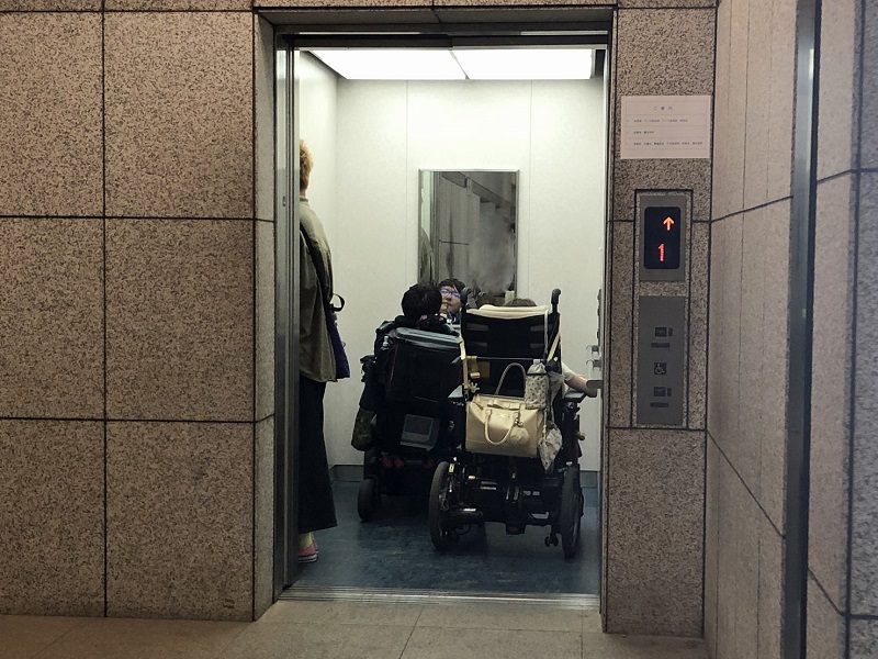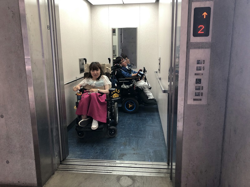 大型エレベーターなので複数の車椅子が一度に乗ることが可能です。