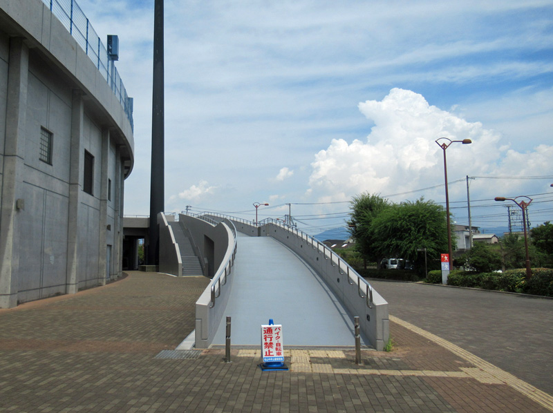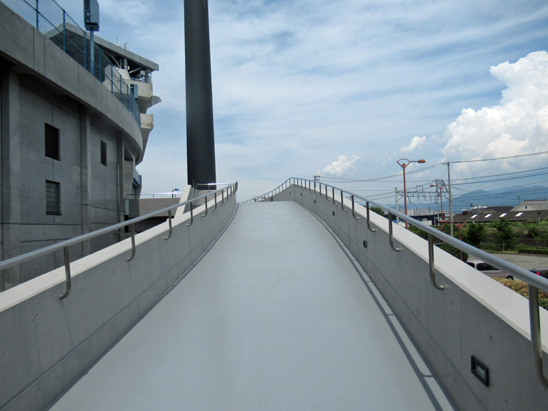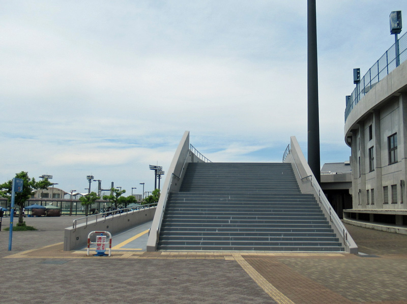 「坊ちゃんスタジアム」で降りた場合、競輪場前のエレベーターを使ってスタジアムへ向かうようになります。