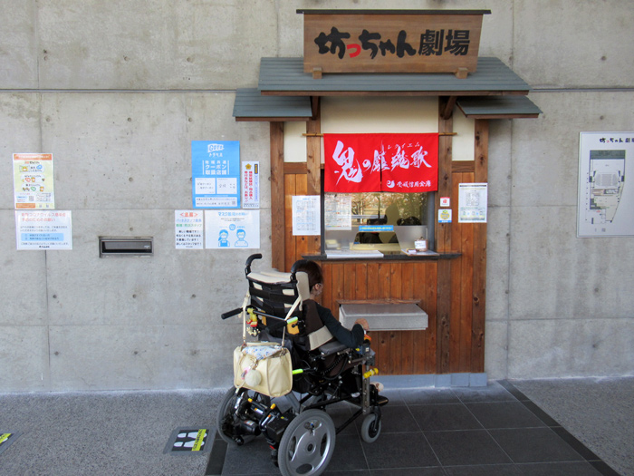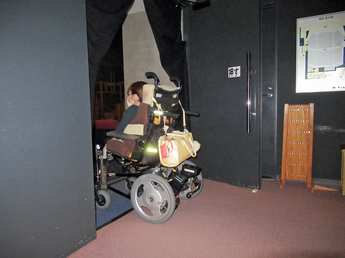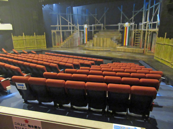 車椅子のままで観劇するためには座席を取り外す必要があります。当日席購入の場合、他のお客様の関係で座席が取り外せないことがあり観劇できないことがあります。前日までに予約するか、あらかじめ電話で確認するようにしましょう。なお車椅子4台まで可能です。
