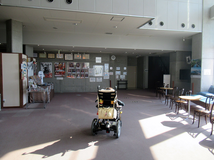ロビーフラットです。ロビーおよび劇場の床は絨毯ですが、車椅子の移動に支障は感じられません。