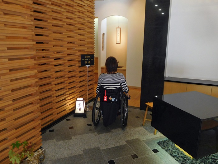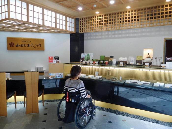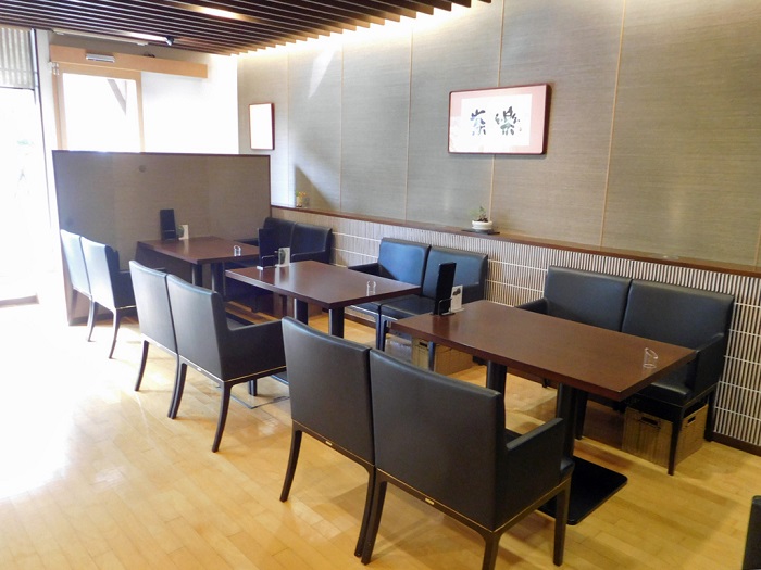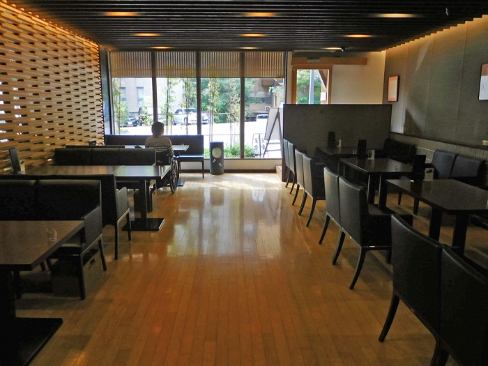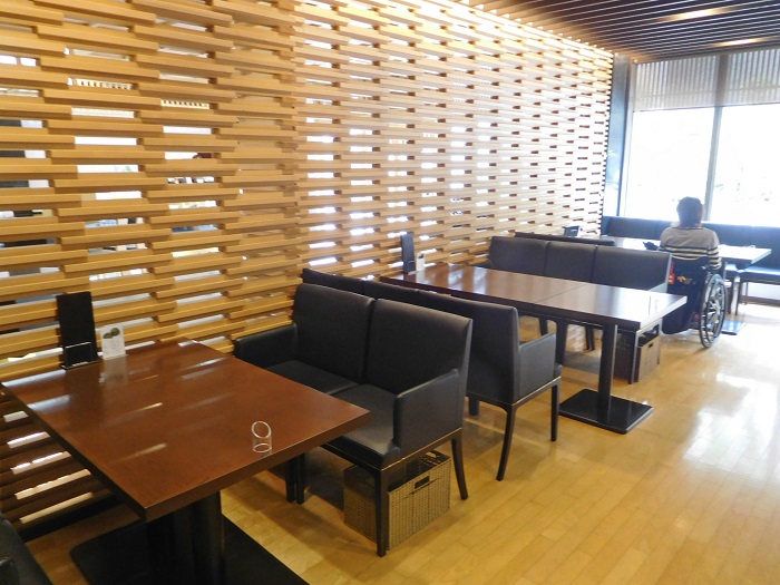 カフェは「和」へのこだわりを感じる落ち着いた空間で、ゆとりある座席の配置となっています。そのため車椅子でも十分なスペースが確保できます。