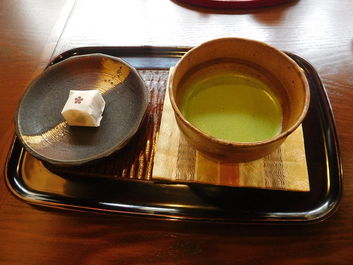 小ぶりながら甘い山田屋おまんじゅうと、すっきりした京都の宇治抹茶の相性は抜群です!後から出てきたお口直しのほうじ茶もほっとする味で落ち着きます。
