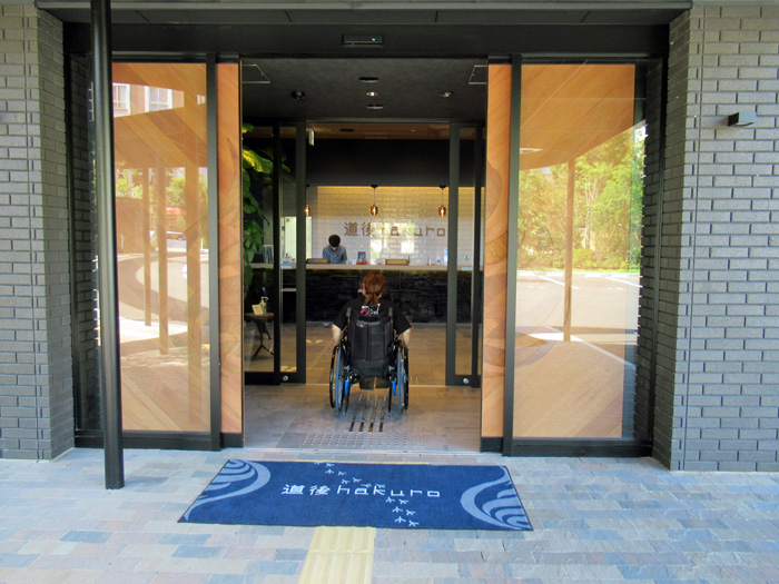 歩道から敷地内入口ドア、フロントまで点字ブロックあり