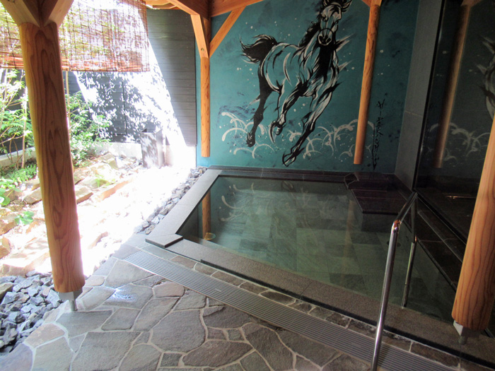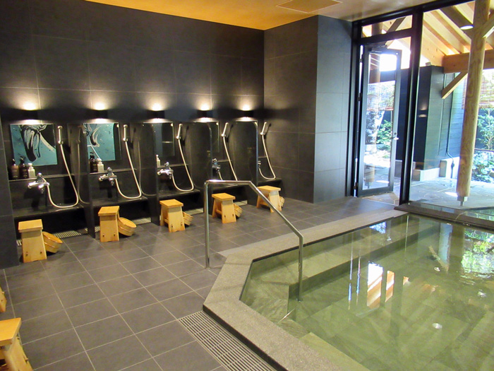1階に大浴場(道後温泉引き湯)があります。 階段3段あります。