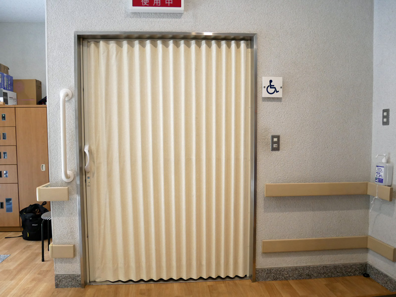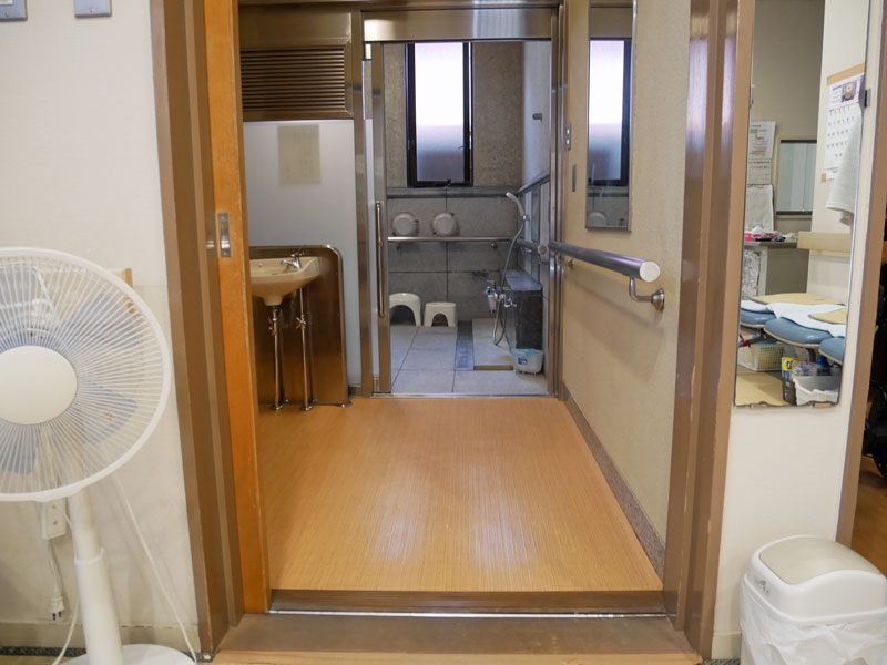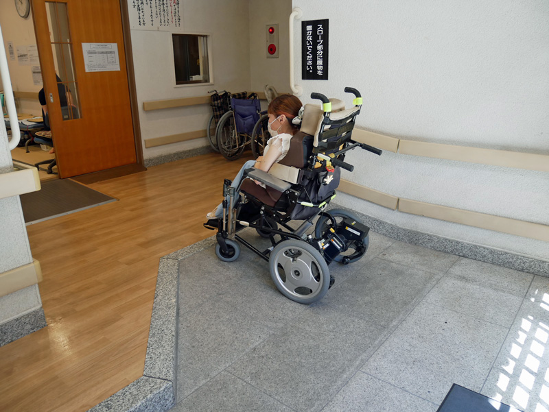 スロープ状になっているので車椅子のまま上がれます。待合室(休憩室)扉幅…90㎝