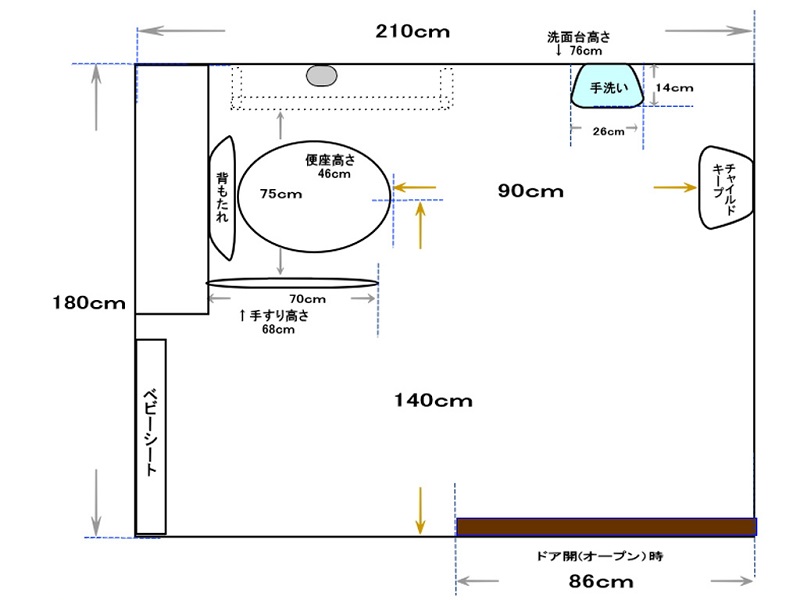 | トイレ幅(ドア開時) | 86㎝ |