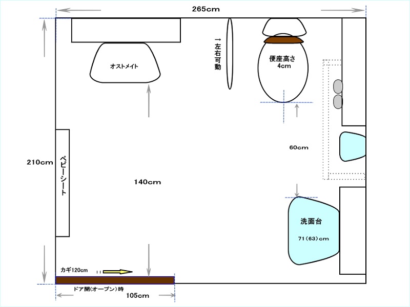 2階にも1階とほぼ同じ多目的トイレが設置されています。