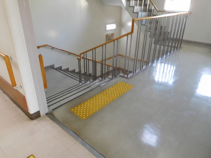 館内手すり取り付けられています。各所に点字ブロックが設けられています。