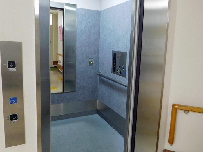 | エレベーター 扉幅…77cm 幅 135cm×奥行 140cm 両側面に操作盤あり |