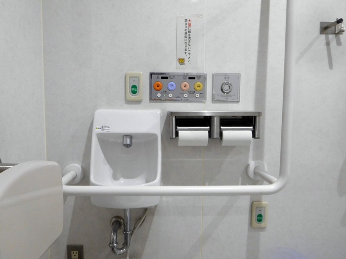 各箇所にバリアフリートイレが設置されています。写真はロータリー(バス停留所前のトイレです。)