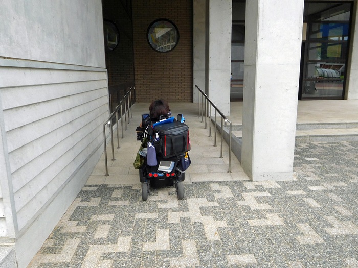2階へは1階のエレバーターを使っていくか、外のスロープを通っていくようになります。