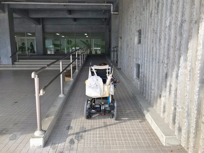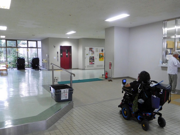 1階は2ヶ所出入口があります。どちらもスロープが設置されており、ドアも自動ドアが設置されています。