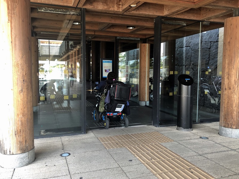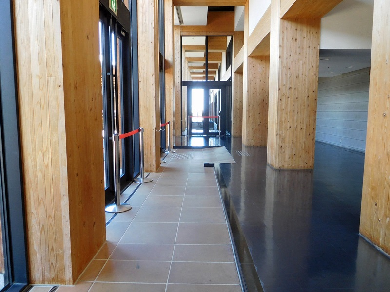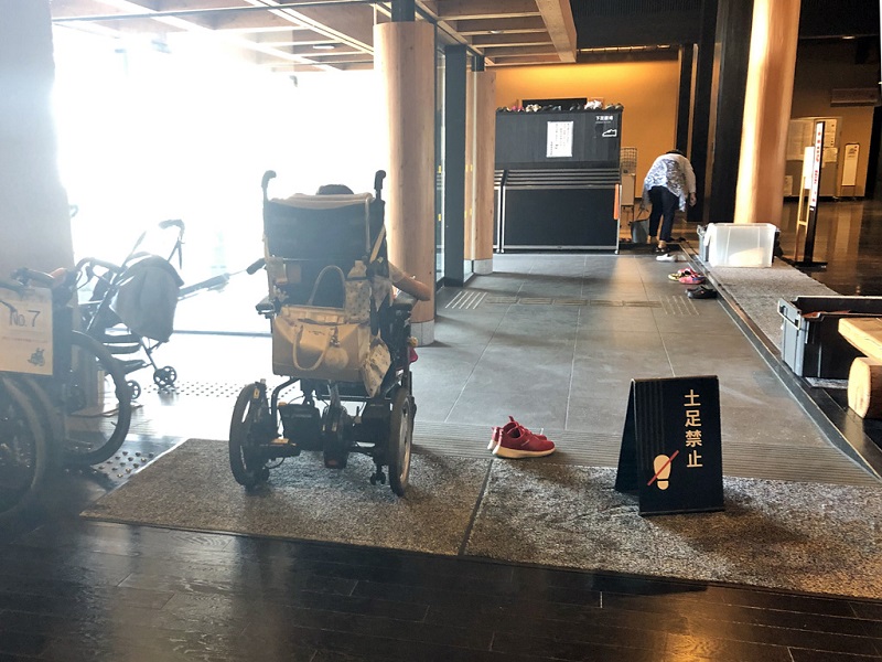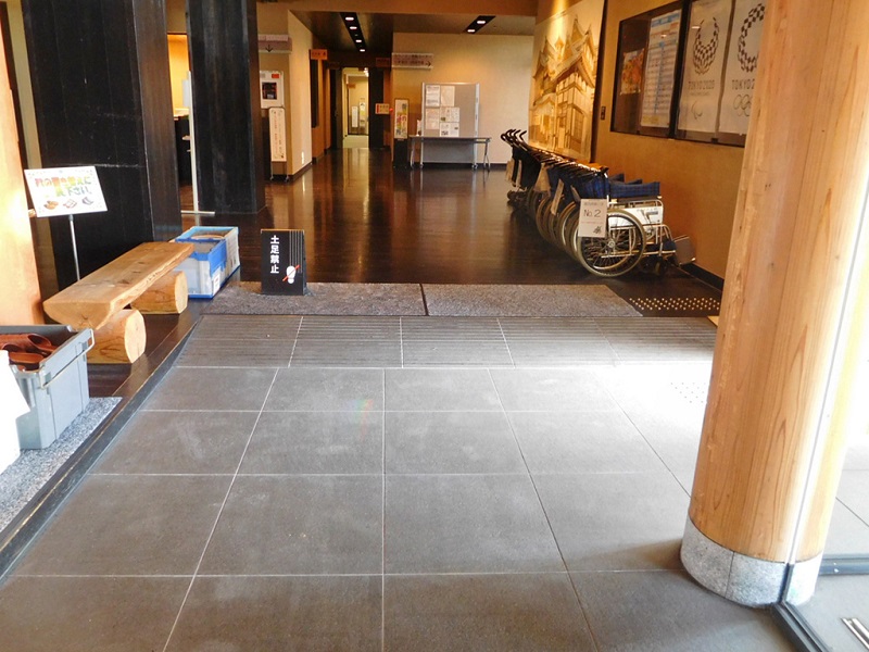 館内土足厳禁のため段差がありますが、入って右手にスロープが設けられています。