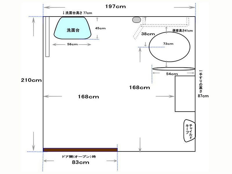| 手すり | 壁側:L字型固定 逆側:U字型上下可動 |