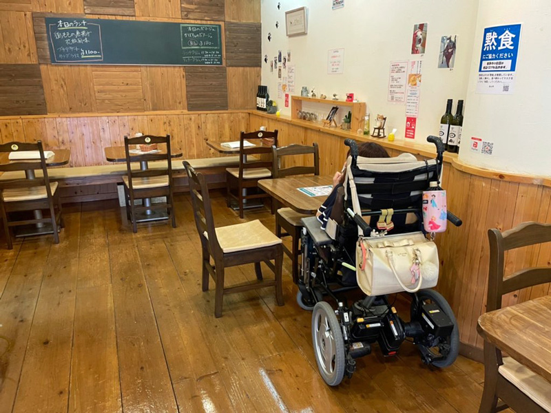そのため店内の広さや配置など、設計段階からの目線は「車椅子が入れるように」を一番に考えながら作られたとおっしゃっていました。