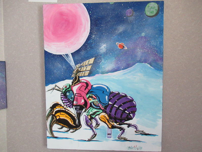 SiSi太郎さんが描く絵は龍のほか動物や宇宙、音楽の絵が多い。そしてその絵はとてもFunckyでありでROCKしている。