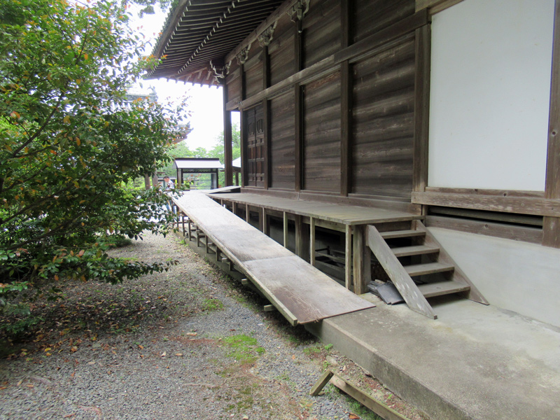 本堂、大師堂、そして歓喜天さま(←繁多寺には愛媛では珍しい歓喜天さま〈聖天さま〉が祀られているのです!)を参拝し終わり戻ろうかと思った時、本堂の横に何やらスロープらしきものを発見しました!これはっ!?と思い近づいてみると本堂へと延びるスロープがありました!!