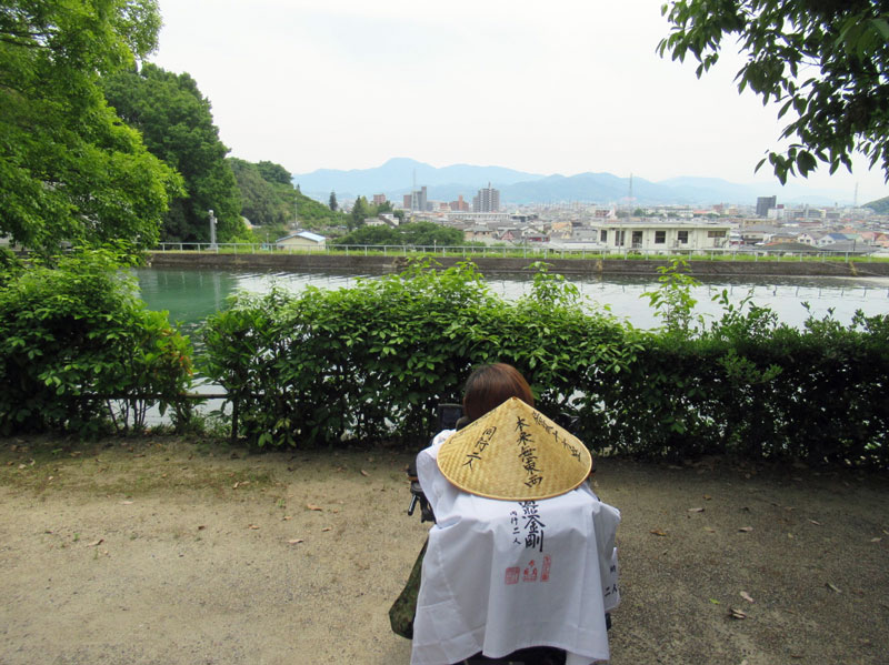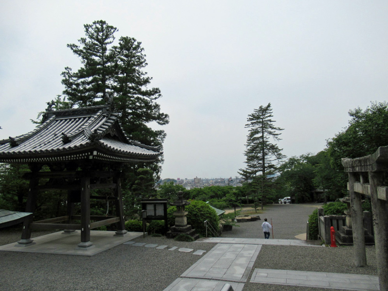 山門を通り抜けると境内中庭となっていますが、砂利のため車椅子では進みにくいです。けれども向かって右側の方は土で固められており、そこを通ればスムーズに動くことができます。本堂に行く前に最後の坂(スロープ)があるので、一休みと思い景色を見渡したところ、松山市内が一望でき心が癒されました。