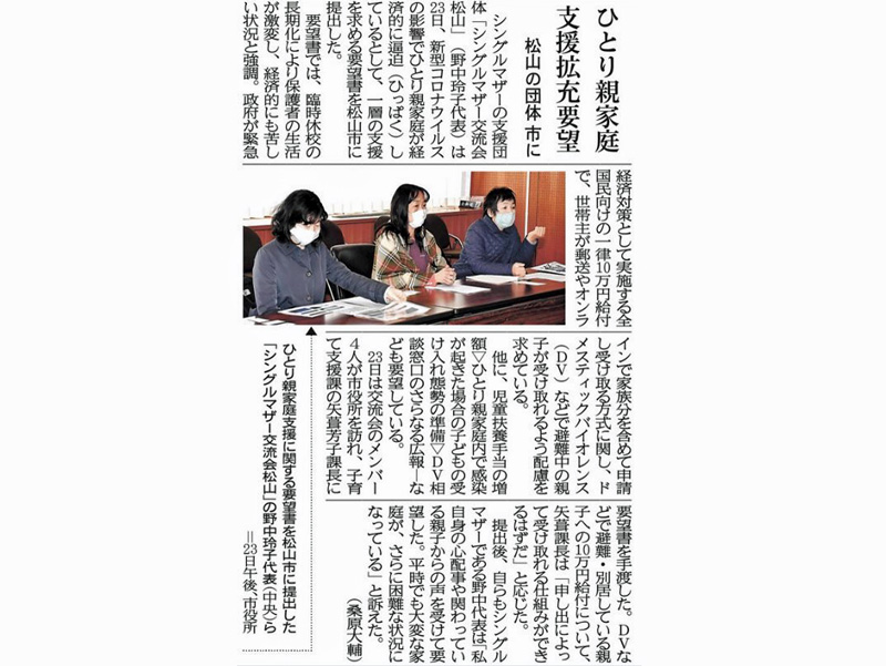 そうですね、アドボカシーの意識をもってソーシャルアクションも続けていきたいです。今、東京のNPO法人しんぐるまざあず・ふぉーらむが中心になって活動しているシングルマザーサポート団体全国協議会というのがあって、それで全国の団体ともつながっています。そこから中央の動きを学んだり、政策提言などの働きかけを一緒にやっています。