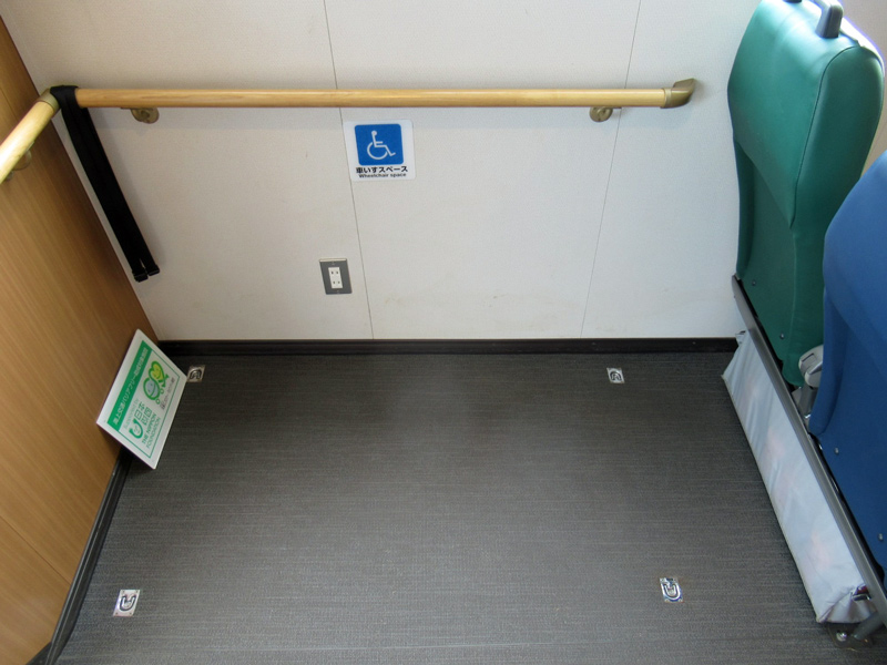 自動ドアの客室には車椅子スペースも設けられています。