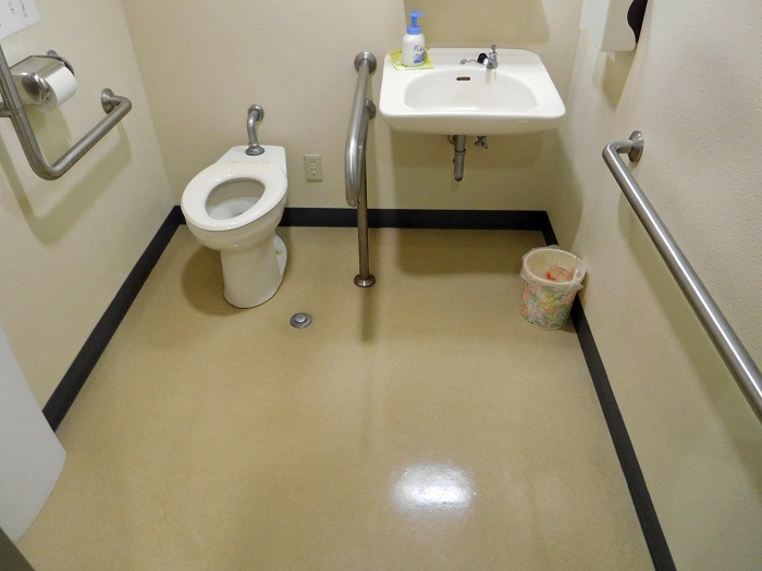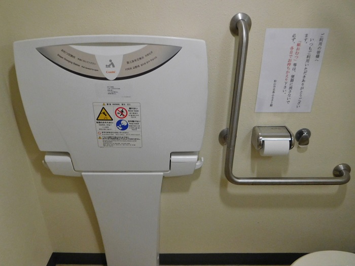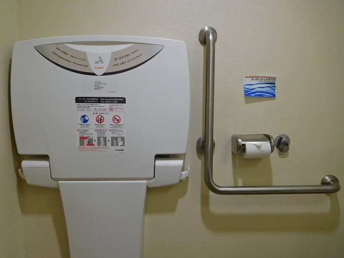 2階にも1階とほぼ同じバリアフリートイレが設置されています。チャイルドキープは男女別トイレにあります。