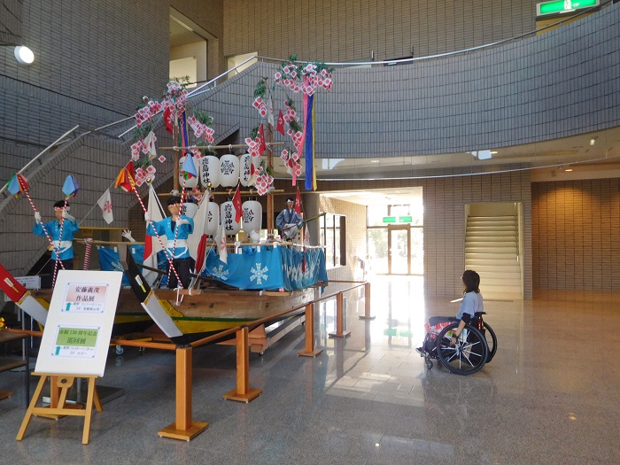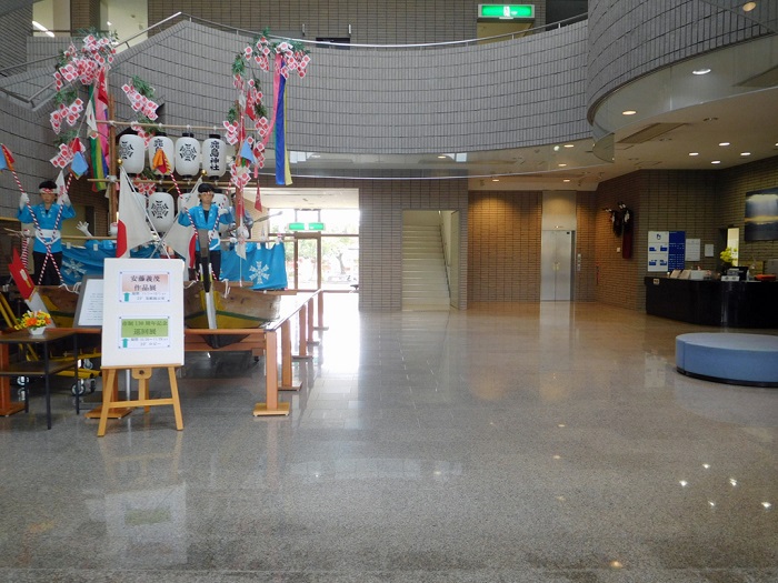 入口を入ってまず目につくのが県指定無形民俗文化財である鹿島の櫂練り。その奥には歴史民俗資料展示室があります。