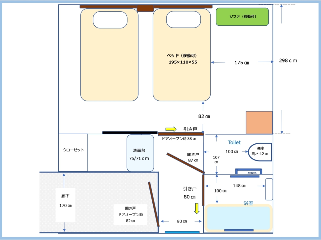 調査協力:Meg(メグ)(車いす幅:横幅62cm × 奥行104cm)
