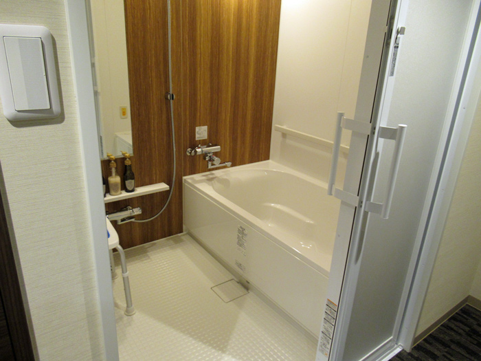 シャワーチェアあり。 浴槽高さ45㎝ 手すり…両側面にあり 緊急時ボタン…あり(1ヶ所)