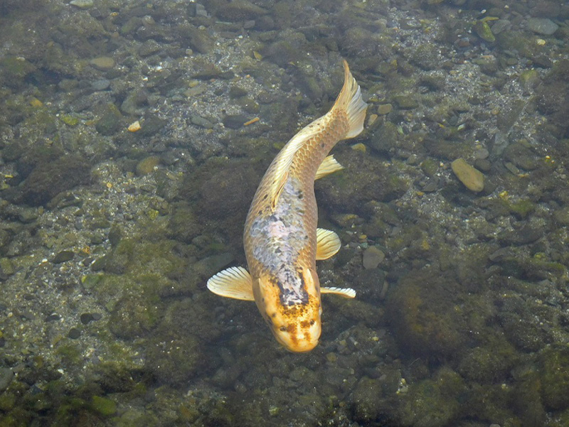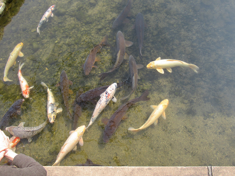 池にはたくさんの鯉がいますが、運がよければ人面魚が見れます!