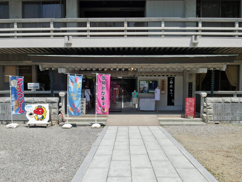 お参りした後は祖霊殿奥に湧き出る御神水で淹れたコーヒー(カフェラテ・カフェチョコ・ミルクココアもあり!)が神社会館でいただけます。(セルフサービスです。)会館までは砂利のため車椅子の場合(少々)進みにくいです。会館入口スロープの傾斜は急です。