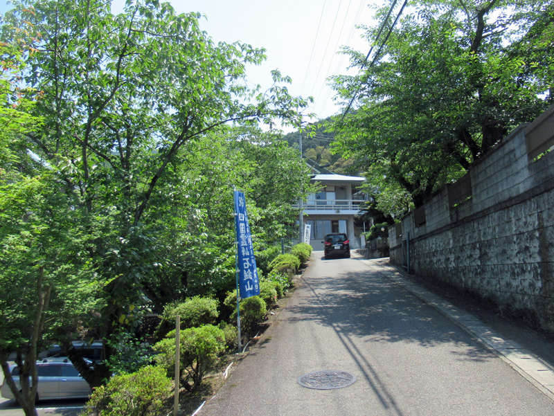 神門右手に車道があるので登っていくと社務所の下に出ます。社務所(下)から更に車道があり本殿まで行くことができます。もし車いすで本殿まで上がろうとするならば急こう配の箇所(④)もあるので複数の介助者が必要です。