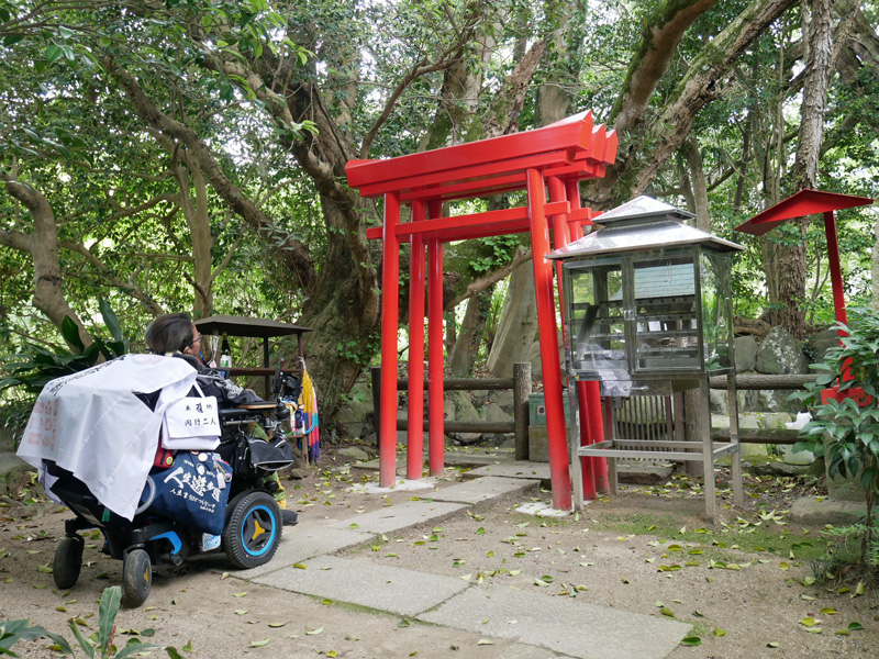 境内砂地ですが、踏み固められているので車いすでも移動できます。ただしところどころに木の根っこが出ているので気を付けて!