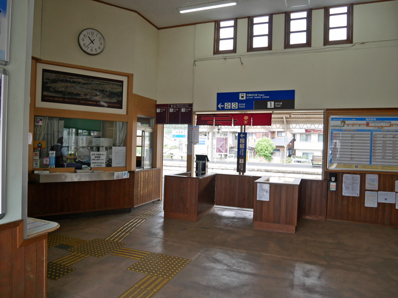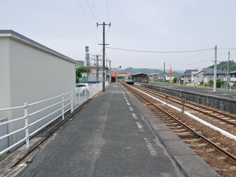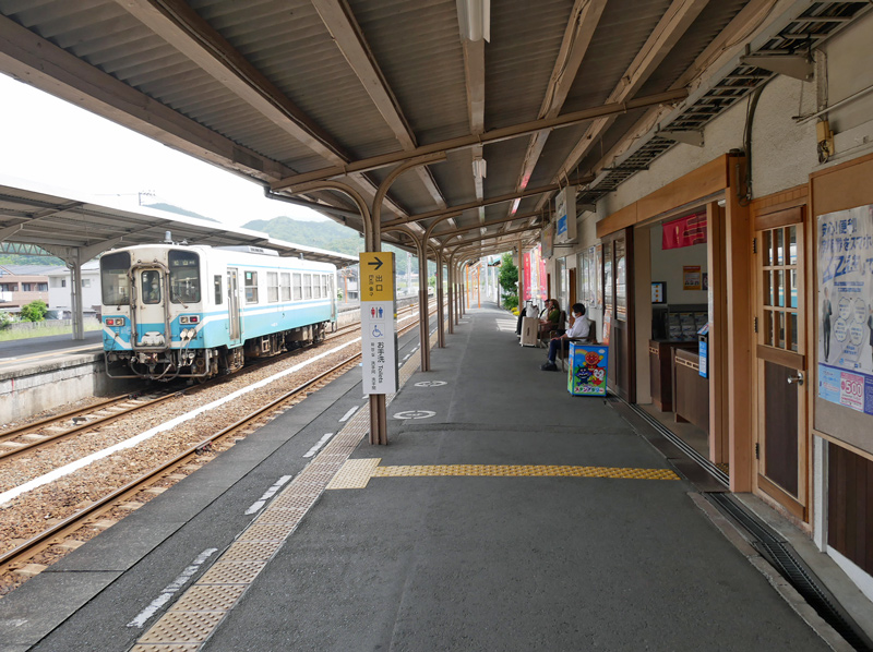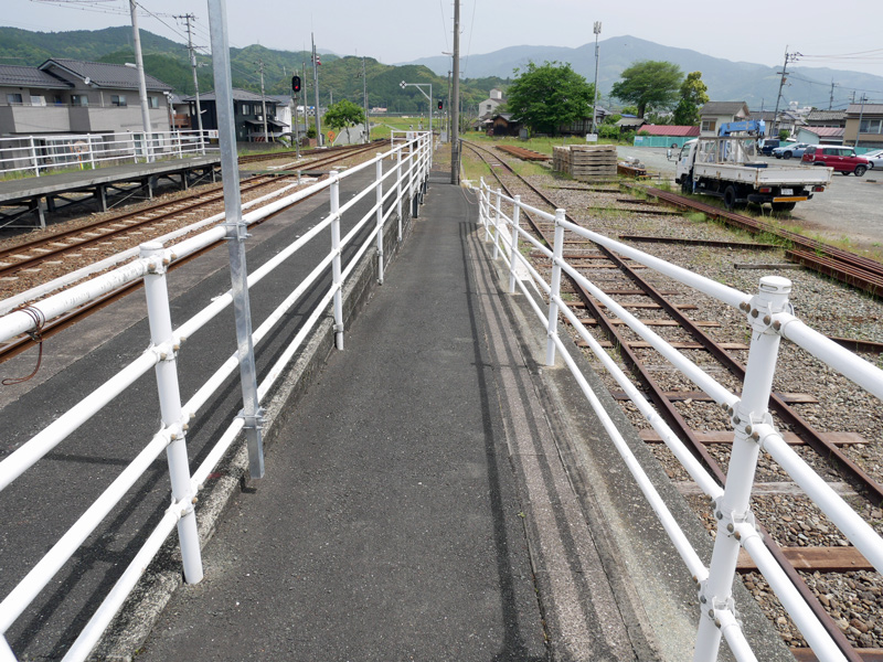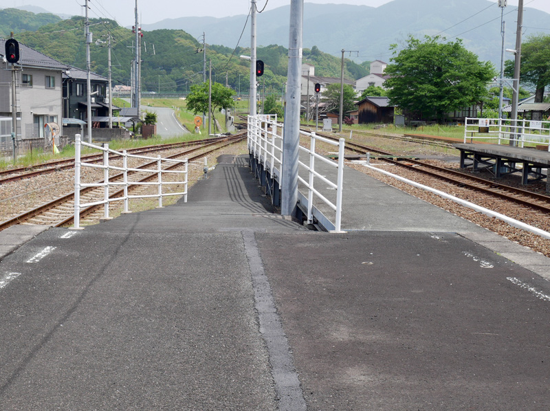 大洲駅にはエレベーターはありません。2番、3番ホームに行くにはホーム端にあるスロープを使用するようになります。(特急列車は1番ホームに停車します。)