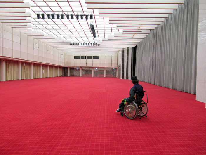真珠の間の床は絨毯敷きですが、車いすの移動にほぼ支障ありません。