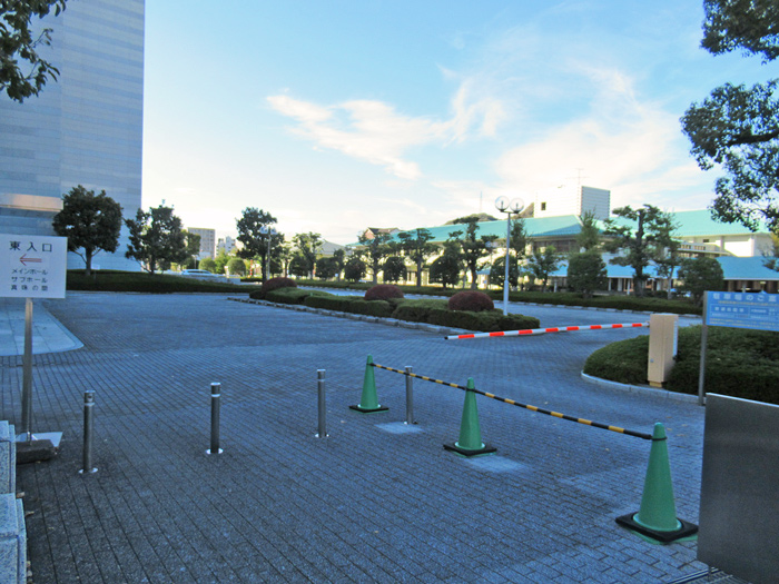 会館東側の優先駐車場に車を止める場合、東側出入口を利用するようになります。