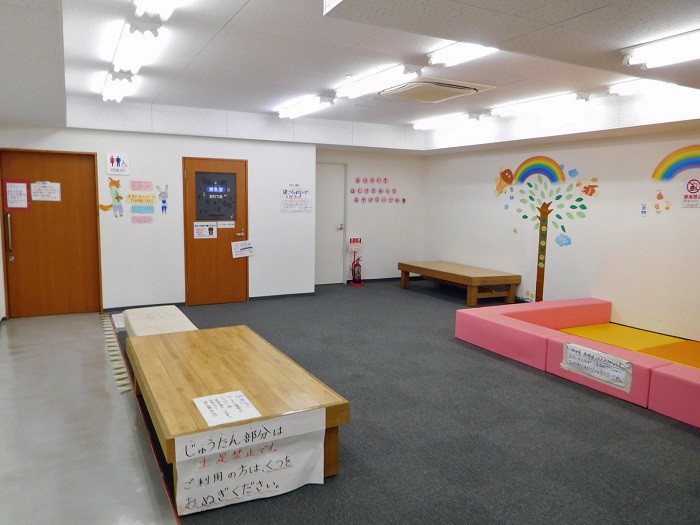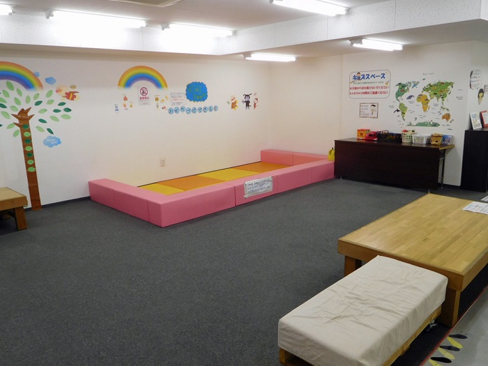授乳室、おむつ交換台はトイレ横に設けられています。キッズルームあります。