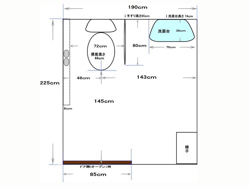 | トイレ幅(ドア開時) | 85cm |