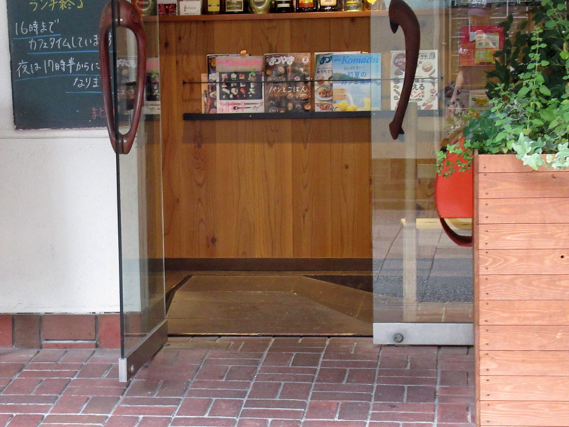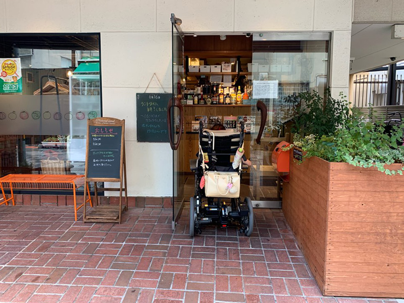 入り口すぐにスロープがありますが、少し急なため1人で登るのは難しいかもしれません。また、入り口を入ったあとすぐに90度回転しないとならないため、難しい場合は、来店の際にお店の人へお手伝いを頼んでみてください。