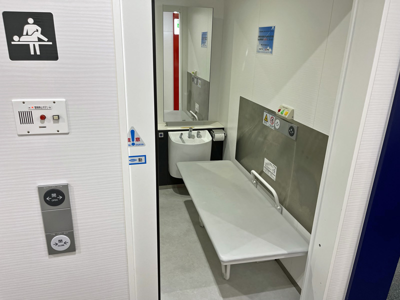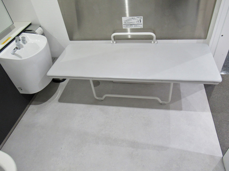 2F西側バリアフリートイレには多目的シートも設けられています。