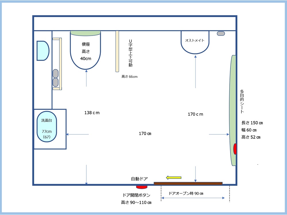 オストメイトあり、 多言語表示ボタン、(視覚障害者用)設備案内ボタンあり