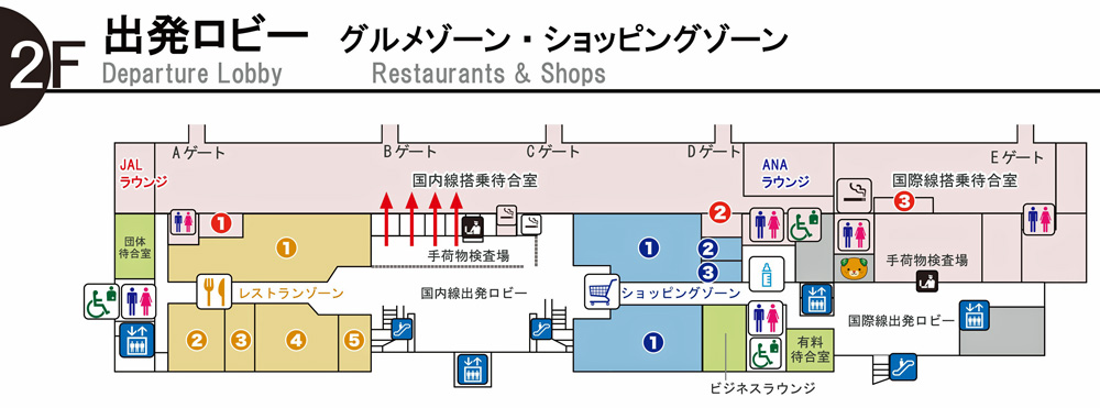 2階(出発ロビー グルメゾーン・ショッピングゾーン)