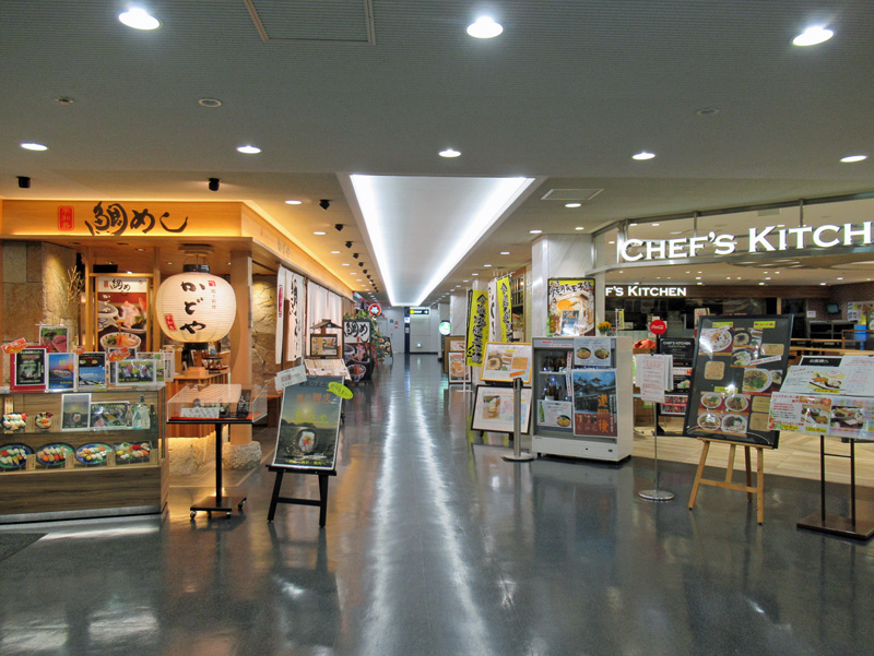 2階には出発ロビー、レストランゾーン、ショッピングゾーンがあります。各店舗フラットです。
