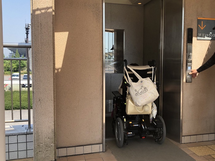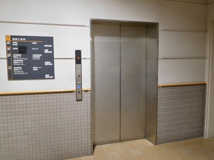 車もしくはJRで来た方は、エレベーターを使って2階に上がり、エントランスに行くようになります。