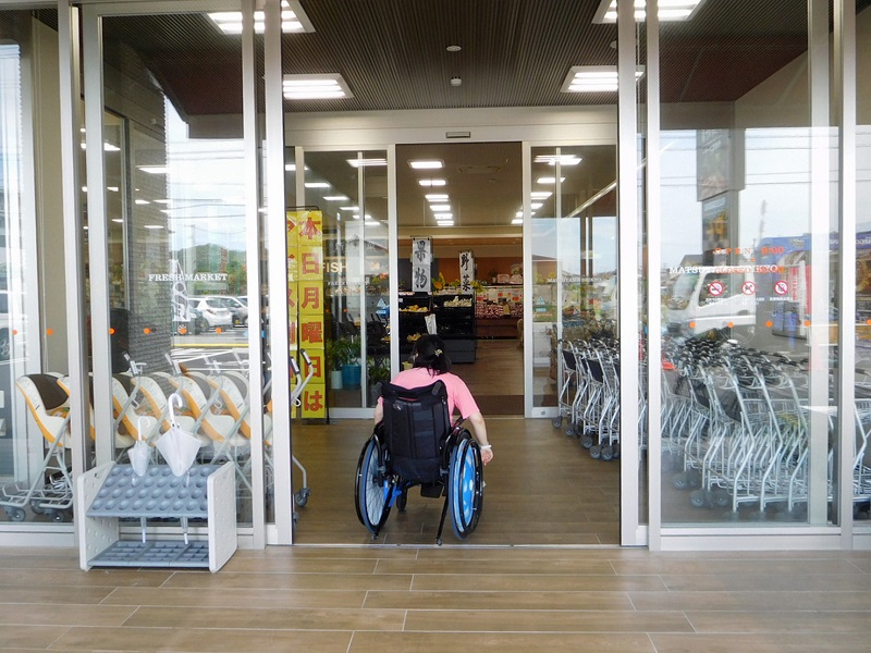 車椅子が通れる幅がありますが、一部商品の陳列により少し通りにくいところもあります。