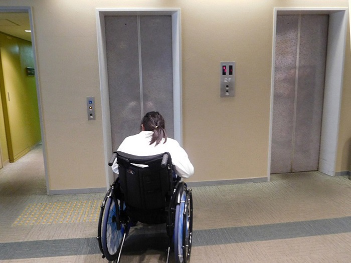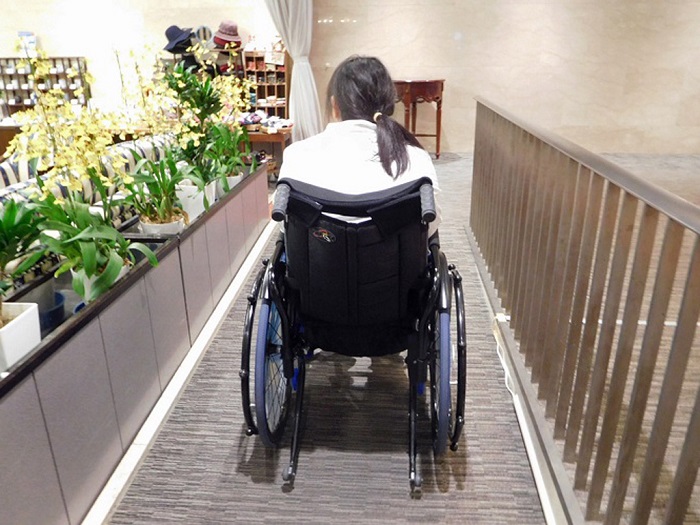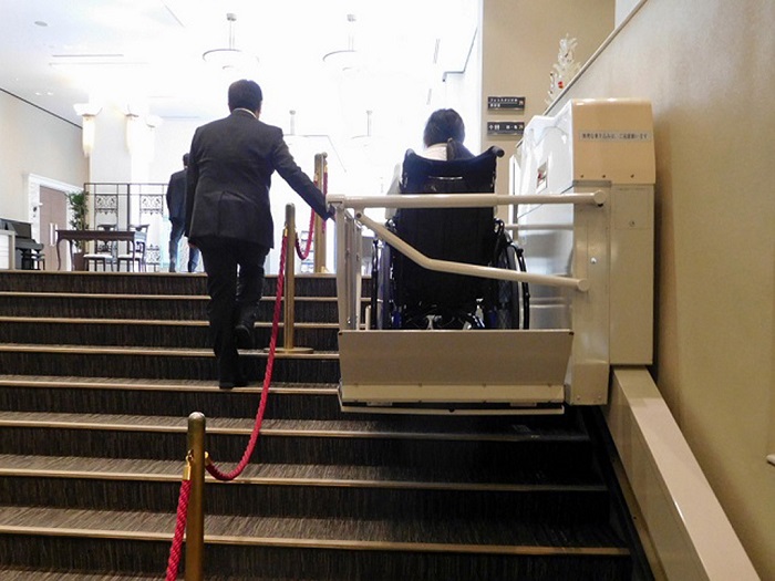 フロントからエレベーターまでスロープと昇降機があります。
