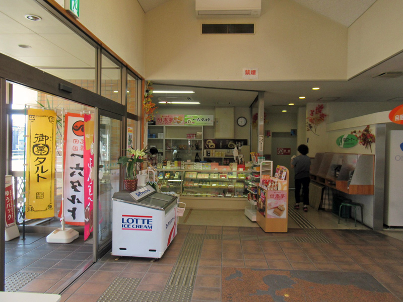 売店横の通路奥にレストルーム、バリアフリートイレがあります。