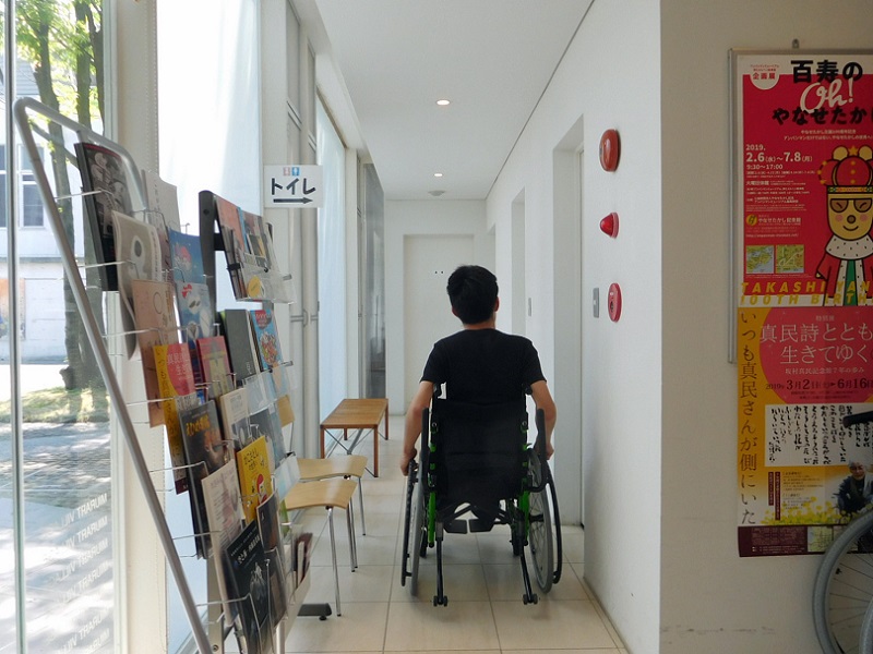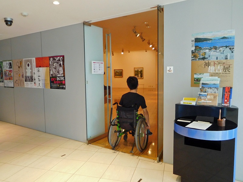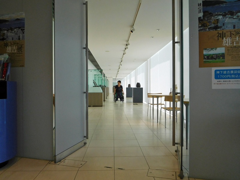 展示場内隣の展示室に行く際扉(引き戸)があります。車椅子でも通れます。(扉開時102cm)