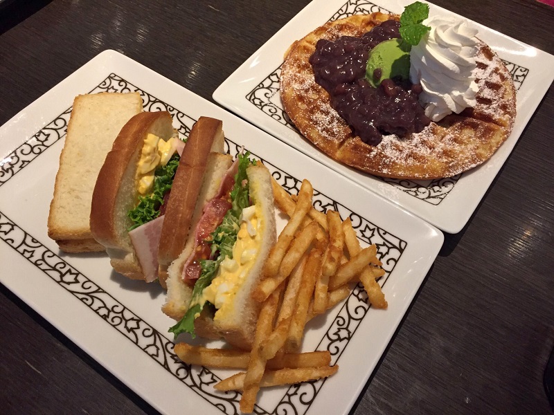ワッフルと BLT を注文しました!! BLT は、食パンをトーストするかどうか選択可能です。パンがとても美味しく、ボリュームがあ る感じです。